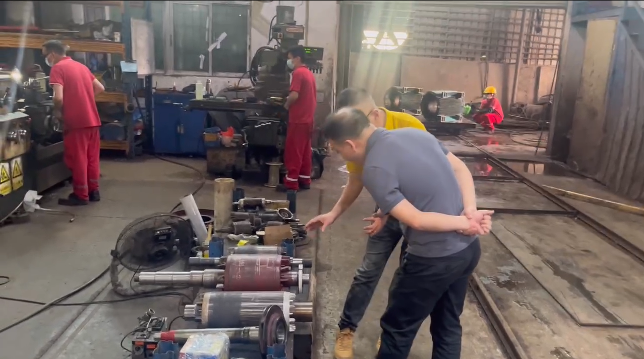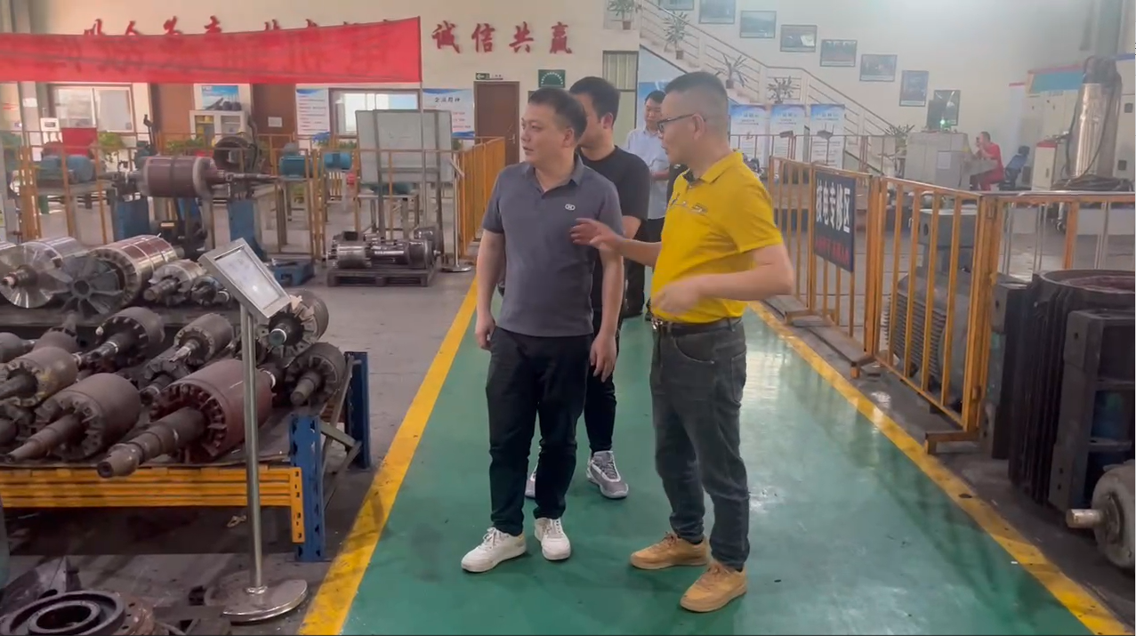 在对环宇通电机维修有了一个初步的了解之后,郭总携环宇通代表一起带领客户参观生产车间,并详细介绍车间各个分区的负责内容和流程工艺等。
