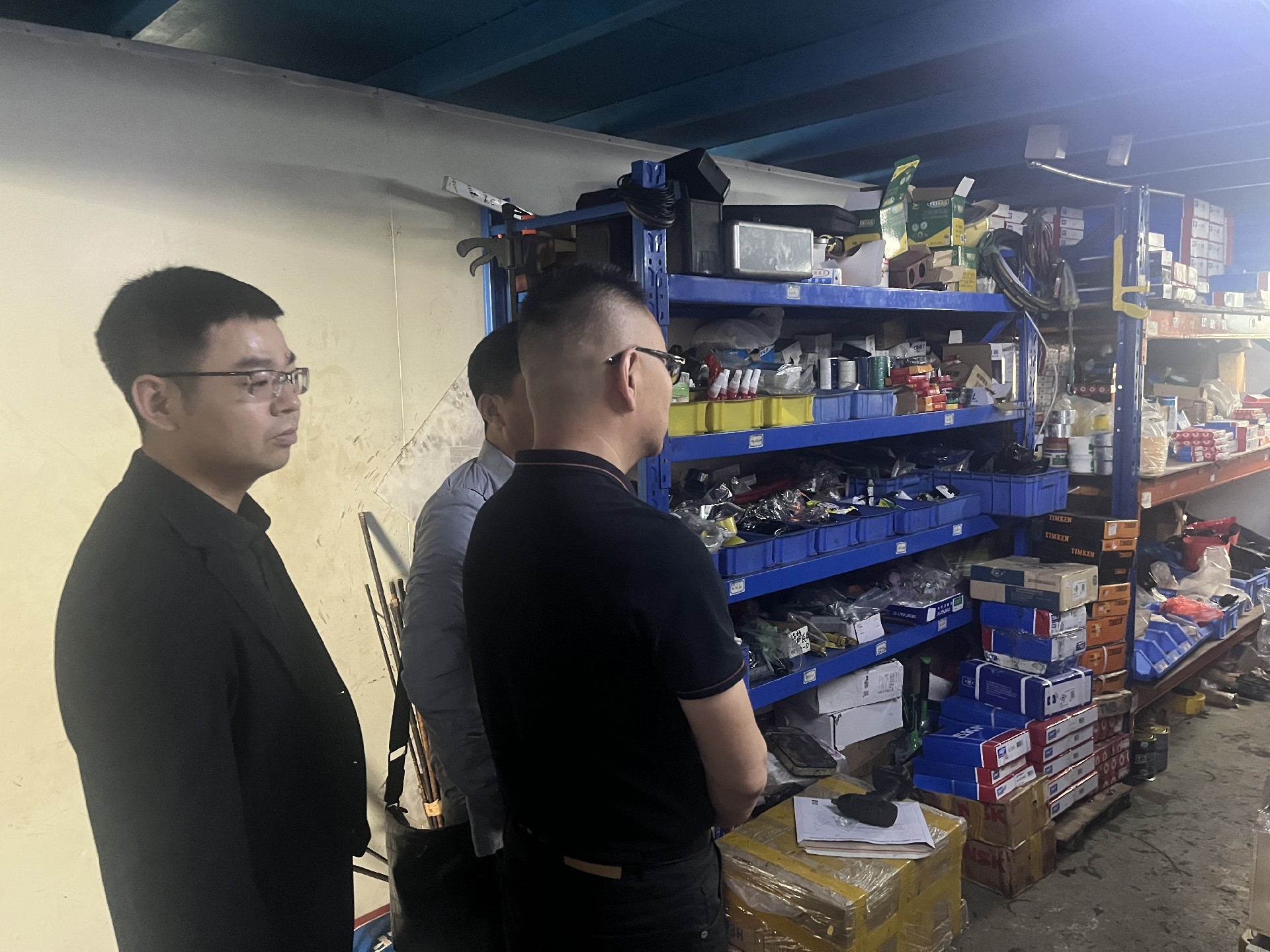 参观仓库轴承、润滑油、漆包线等备件