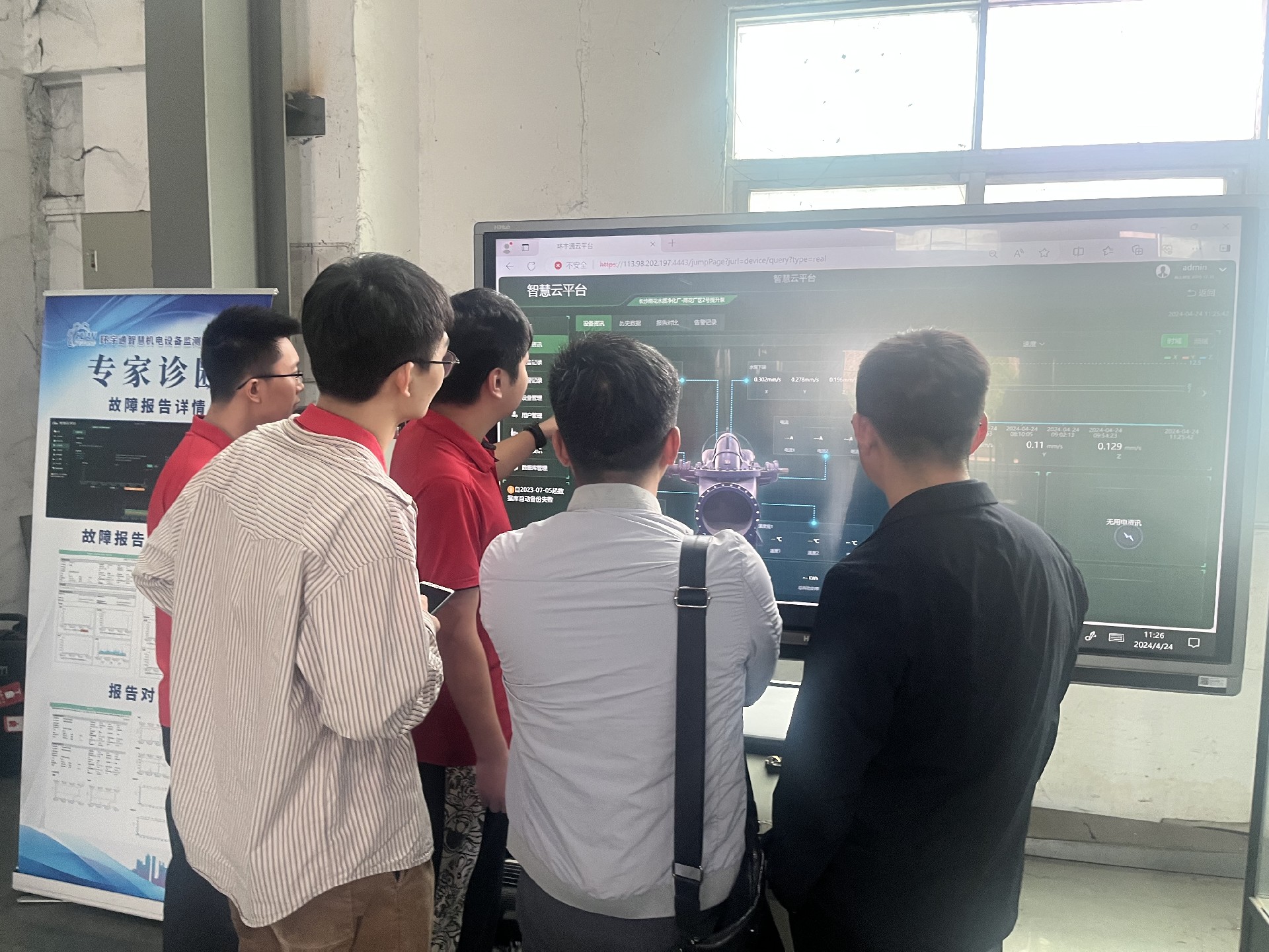 环宇通技术人员向客户讲解机电设备状态管理在线监测云平台