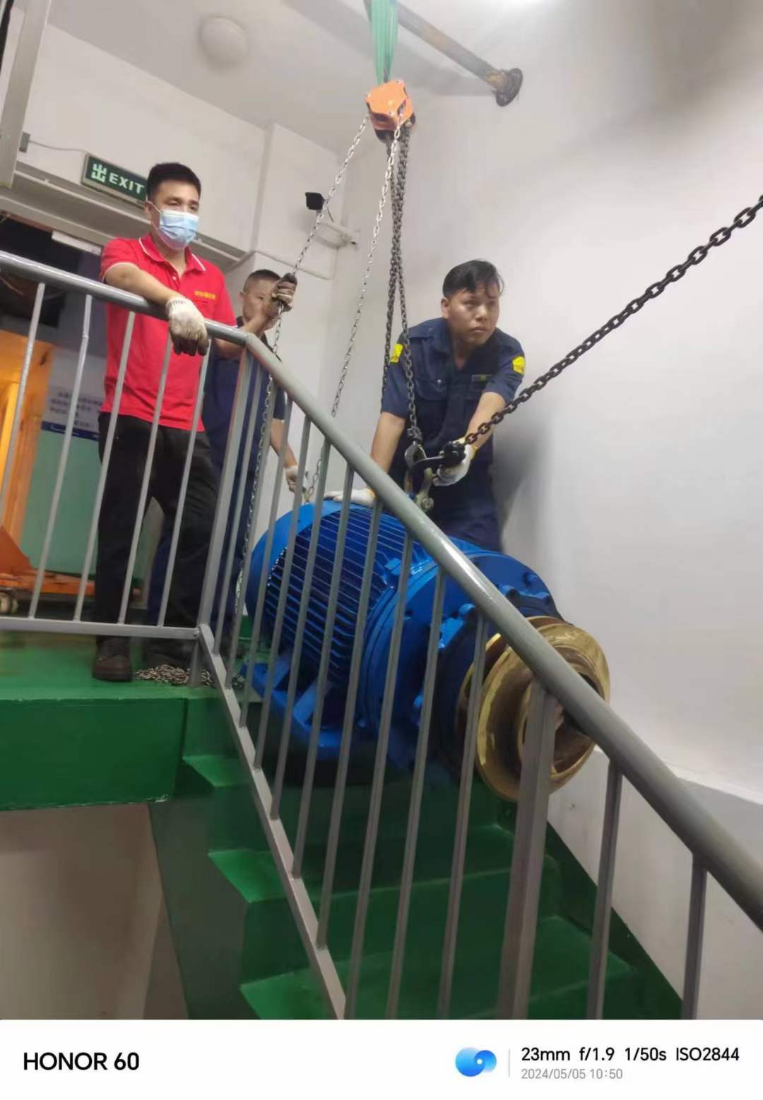 环宇通电机维修团队一群专业、高效的电机维修工程师组成,他们总是能够在第一时间赶到现场,为客户提供最及时的服务。这次暴雨侵袭客户水厂泵房,他们接到通知的第一时间便毫不犹豫地立即驱车赶往现场。