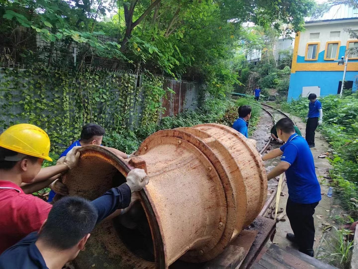 经过几个小时的紧张工作,环宇通人和现场工作人员齐心协力,终于完成拆卸和运输装车任务。随后便送回车间进行设备的整体检修和维修,焕然一新,指日可待!