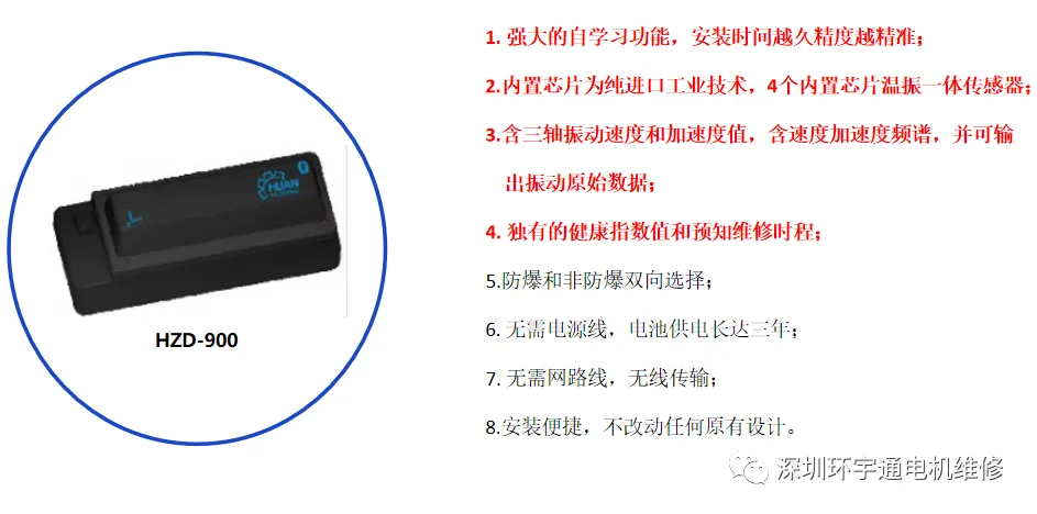 振动传感器法是一种非接触式的检测方法,通过将振动传感器安装在电机轴承上,采集电机轴承振动信号,并进行分析,从而判断电机轴承的运行状态。该方法具有检测速度快、精度高等优点。环宇通的智慧电机全生命周期监测系统其中一个板块之一便是高精度振动传感器,24小时实时监测电机轴承振动、温度等数据配套整套系统实时掌握电机运行状态,即时预警保障电机正常生产。