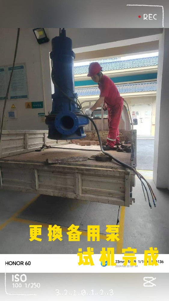 外出现场,更换备用泵一台试机完成,拆管道轴流泵一台
