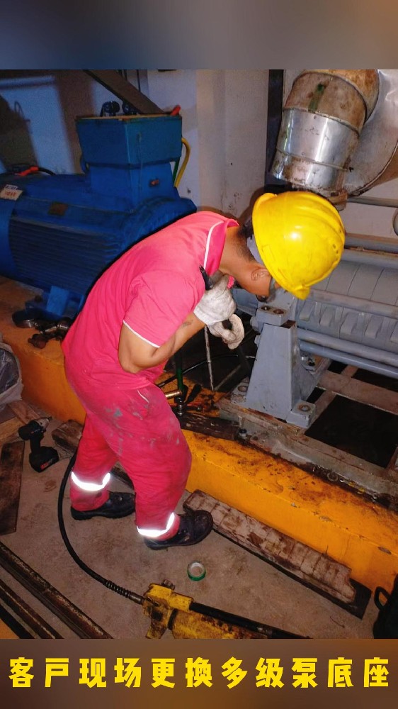 客户现场更换多级泵底座,重新对中,水泵维修我们是专业的!